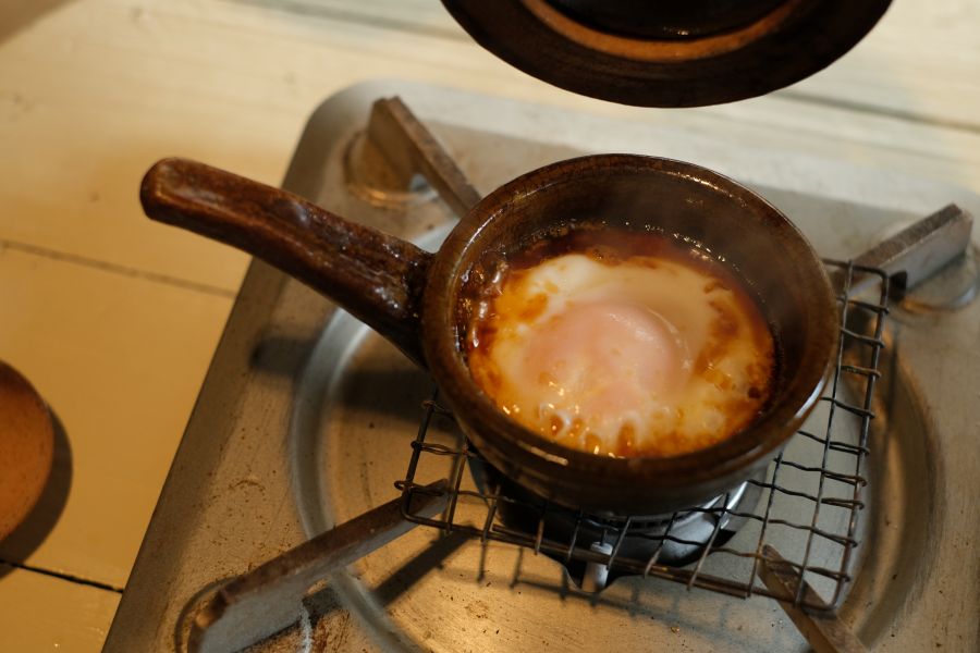 「ガスコンロ一口につき、エッグベーカー一個しか乗せられないので、忙しい朝には不向きかもしれませんが…。蓋を開け閉めしながら焼き加減を見極める時間も楽しみの一つ。そういう過程ごと、楽しんでもらえたらうれしいです。薪ストーブがあれば一度に何個か乗せられますし、火の伝わり方も相性が良いですよ」。