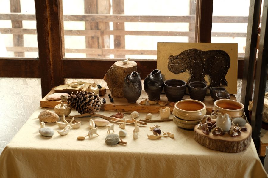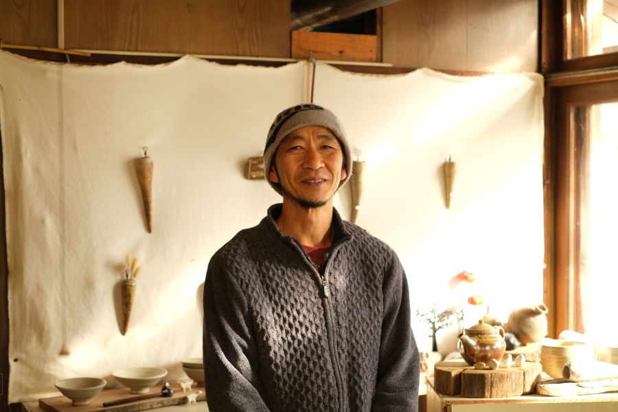 七飯町上軍川地区。晴れた日には駒ヶ岳が見える土地に、松浦喜英さんが営む工房塒はあります。夏は蓴菜(じゅんさい)を採り、湖が氷る冬はワカサギ釣り場で働き、自宅ではヤギやニワトリを飼って。その傍らで陶芸を続けてきた松浦さん。自身のことを、「陶芸をやる漁師で、ヤギ飼い」だと話します。